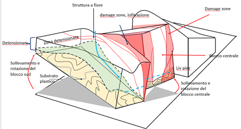 Nei progetti di gallerie profonde assumono notevole rilevanza le previsioni delle venute d’acqua, che non di rado si trovano in corrispondenza di zone di frattura e di faglia importanti. Alcune tipologie di faglie risultano influire in modo particolare sull’entità e direzione del flusso idrico, ed è quindi apparso utile un approfondimento, basato su dati sperimentali, sui collegamenti fra la tipologia delle faglie regionali e la circolazione idrica sotterranea. Lo studio ha preso in considerazione la tipologia di faglie che , secondo la letteratura , maggiormente si prestano a convogliare in profondità le acque che provengono da piogge e fusione delle nevi e quelle che si originano della rete idrica superficiale. Si è concentrata l’attenzione sulle faglie transpressive dotate di una componente rotatoria (wrench faults). Questo tipo di deformazione tettonica comporta in effetti sia lo stiramento dei due blocchi di roccia in più fasi e in direzioni diverse, sia un movimento rotatorio. Solitamente si formano intorno al blocco ruotato zone di detensionamento (damage zones) molto estese , che interessano anche la base dei blocchi sui quali avviene il movimento, a differenza di quanto generalmente si osserva negli altri casi.